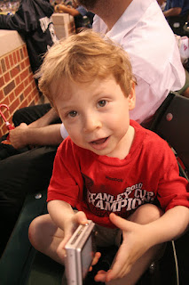 Jack, Eddie and I took in the Road to Wrigley game last week (thanks Ed) where The Peoria Chiefs took on the Kane County Cougars. Jack devoured a bratwurst (without the bun) and a handful of M&Ms. He also used his cuteness to coerce a ball (official Midwest League) out of one of the Peoria Chiefs relief pitchers (though in my excitement, I forgot to check his number, so I don't know who it was).
